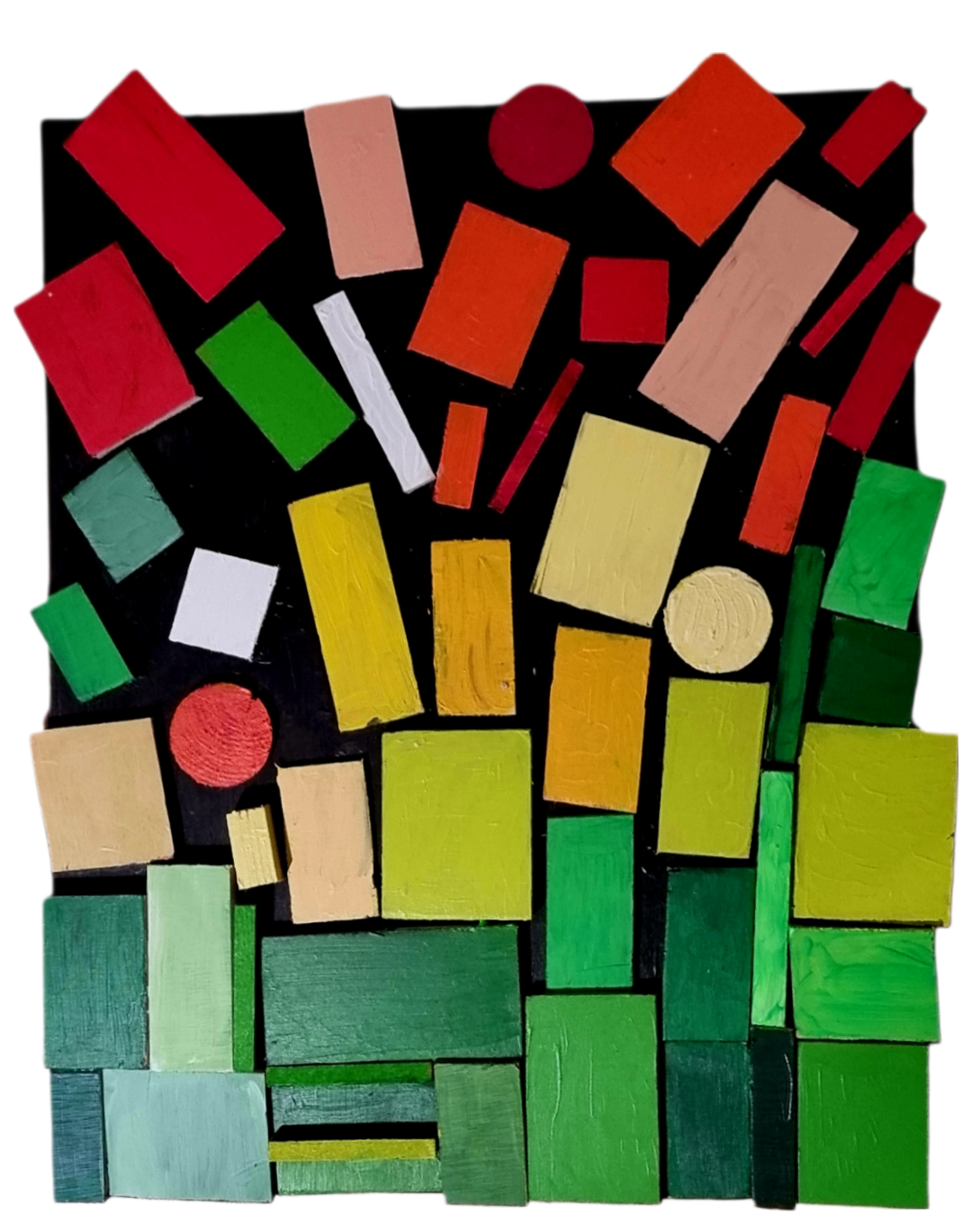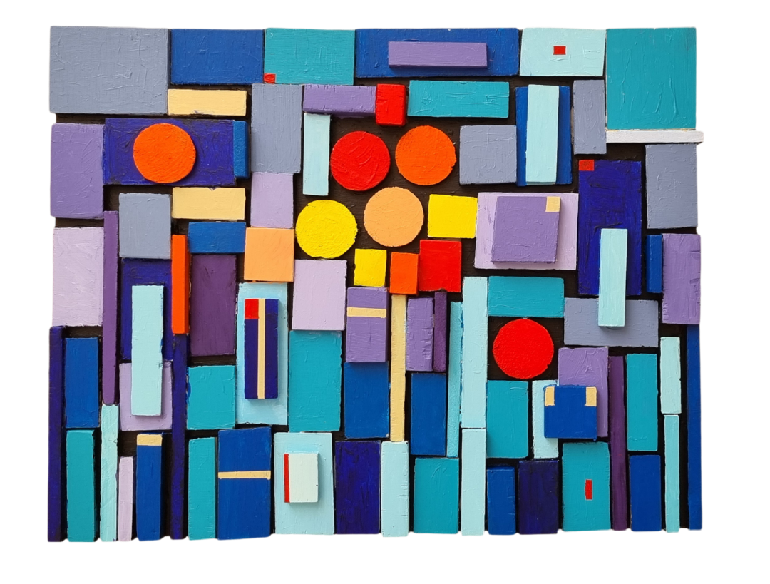 Kunst geschilderd op hout. Mijn nieuwe kunstuiting. Zeer kleurrijk. Hier worden binnenkort meerdere schilderijen getoond.